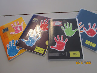 As capas para arrumar os trabalhos que são realizados em folhas A5. As capas são feitas em colaboração com as crianças.